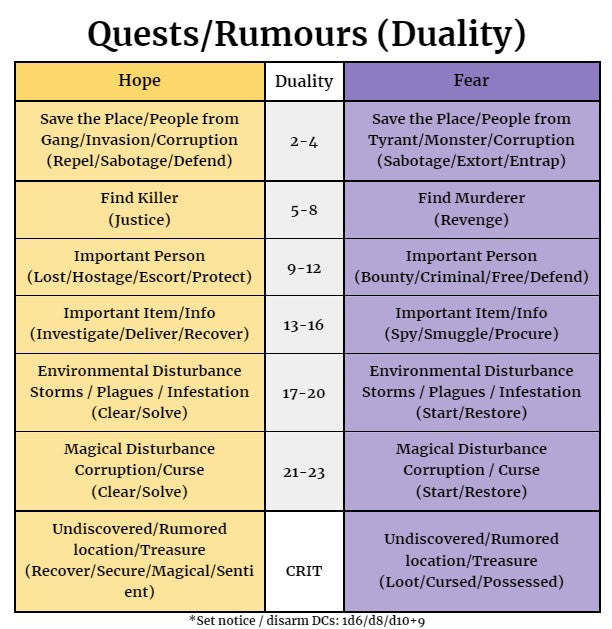Hope & Fear help determine the Motivation and flavour behind the Quest or Rumour.